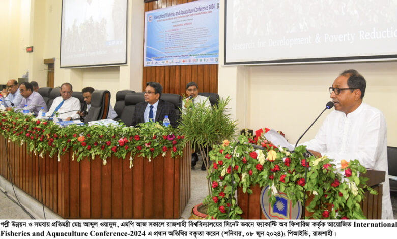 রাজশাহী বিশ্ববিদ্যালয়ে আন্তর্জাতিক মৎস্য ও জলজ কৃষি সম্মেলনে পল্লী উন্নয়ন ও সমবায় প্রতিমন্ত্রী