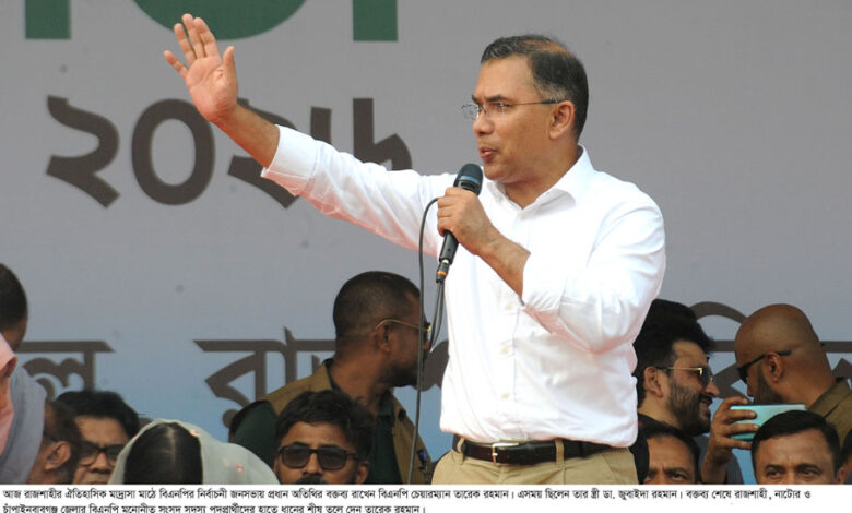 রাজশাহীতে বিশাল জনসমুদ্রে বিএনপির চেয়ারম্যান তারেক রহমান