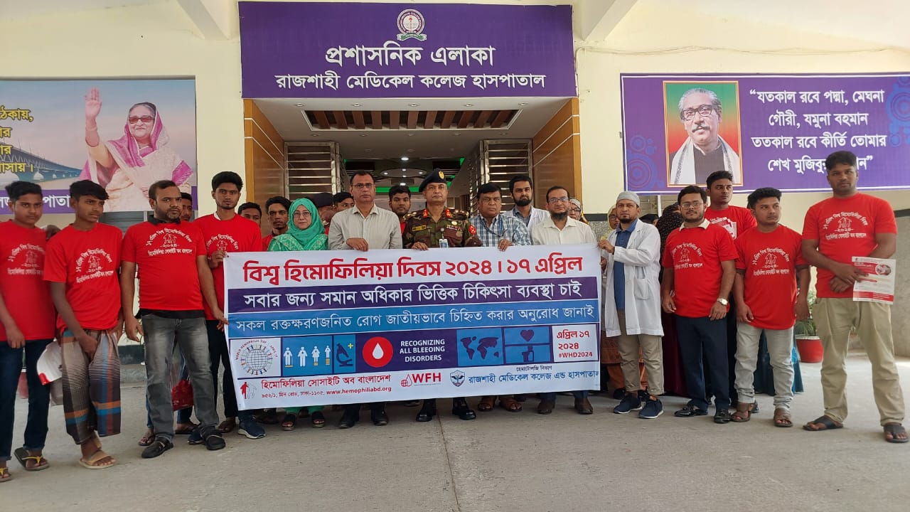 বুধবার (১৭ এপ্রিল) সকাল ১০ টায় রাজশাহী মেডিকেল কলেজ হাসপাতাল চত্বরে হিমোফিলিয়া সোসাইটি অব বাংলাদেশ, ডাব্লিউএফএইচ ও হেমাটোলজি বিভাগ রাজশাহী মেডিকেল কলেজ হাসপাতালের যৌথ আয়োজনে রোগী সমাবেশ, পদযাত্রা ও মতবিনিময় সভার মাধ্যমে দিবসটি পালিত হয়।