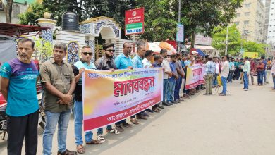 সাইবার আইনে সাংবাদিকের বিরুদ্ধে মামলার প্রতিবাদে মানববন্ধন