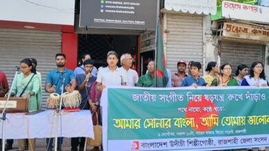 রাজশাহীতে সমবেত কণ্ঠে জাতীয় সংগীত গেয়ে উদীচীর প্রতিবাদ